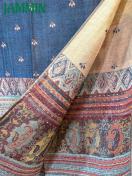 ベース色は落ち着いた薄い青系で、一部に金のラメ糸入りです。