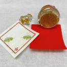 【ガラス製 鏡餅 &金彩硝子飾り 午 小】の2点 新品、未使用品 写真画像2枚目のデザインのお品をお届けします。