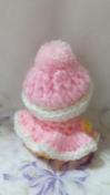 大きなポンポン帽子とフリルタップワンピースのひよちゃんです。