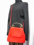 【カラー】レッド系(前底本革スエード)× ハンドルゴールド金具 × 裏面艶のあるなめらかなレザーxショルダーストラップレザー