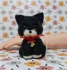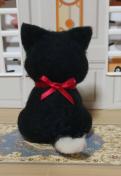 黒と白の羊毛フェルト製の猫の置物、手のひらサイズで可愛らしいデザイン。