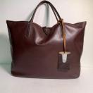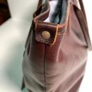 本革製のダークブラウントートバッグ、マチは大きめでたっぷり収納できます。