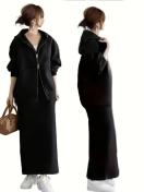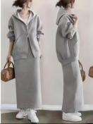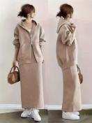 新春秋のスーツ、フード付きジッパースウェータージャケット+スカート、カジュアルな2ピーススーツ、ファッショナブルでカジュアル、外出用の休暇に最適