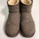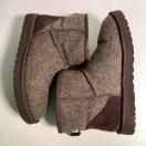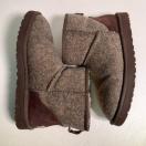 希少なウール素材ヘリンボーン のツイード柄ムートンブーツ、25.5cmのサイズで暖かさとスタイルを兼ね備えています。