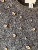 先月店頭で購入、Sサイズ、半袖、グレー系。ビジューがふんだんについており、アクセ要らずです。お出かけ時に3回着用、特記すべきダメージはないかと思います。レタパライト発送予定、ノークレームノーリターンでお願いします。締切日時