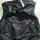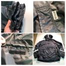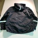 希少な90年代スタイルのフード付きブラックナイロンジャケット、リフレクター付きで機能的。