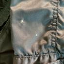 前面中ほどと右袖先に焦げた様な跡がありますが穴あきはございません。