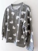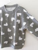 グレー地に白いアルパカが並んだ、やさしい雰囲気のデザイン。