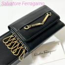 Salvatore Ferragamo Leather 6-Key Holder Key Case IR-221807 Black