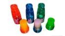 ボトル型のカラフルな消しゴム、青 ブルー ・オレンジ・緑 グリーン のドット模様。