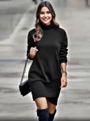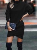 レディース エレガント ハイネック 長袖 ワンピース クロスフロントディテール - 無地、裏起毛で暖かく、リブ編みの質感、秋/冬に最適、カジュアルからフォーマルウェア、カジュアルな冬の服装 | ハイネックドレス | コンストラクション、冬用ワンピース