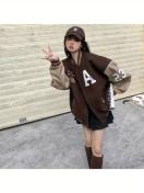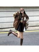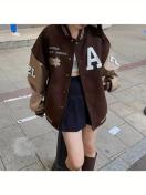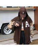 レディース - 裏地付き厚手ウィンターベースボールジャケット - ルーズフィットカレッジスタイルボタンフロントコート、ユニフォームやカジュアルスタイルに最適な暖かいハイストリートアウター(無地カラー)