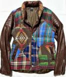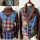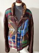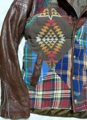 ■珍しいオルテガ ネイティブ インディアン 柄のウール生地と革レザーとの切替ライダース