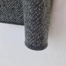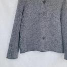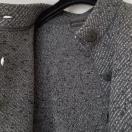 ゆったりニットのグレーのボタン付きジャケット、シックで渋めなカジュアルスタイルに最適。