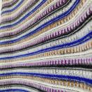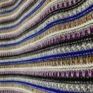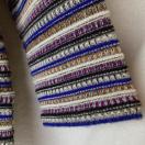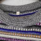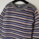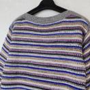 多彩なボーダーデザインのニットセーター、ラウンドネックで着心地良好。