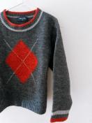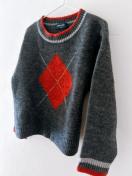 落ち着いたグレーに大きなレッドのアーガイルがアクセントになったおしゃれなデザイン。