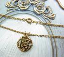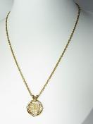 【色味】 トップ、チェーンともに艶のあるゴールドカラーです。トップにはクリアなストーンが埋め込まれています。