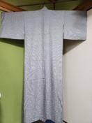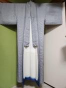 こちらは全体に細かい模様(地紋)が入っており、裏地(八掛)が裾部分で青く染め分けられており粋な小紋です。
