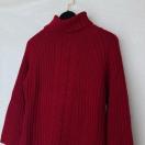 リブ編みのくすみ赤 タートルネックセーター、長袖デザインで温かさを提供します。