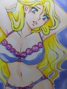 自作イラスト・送料込・スーパーリアル麻雀・クリス・ガーランド・下着姿・ハガキサイズ
