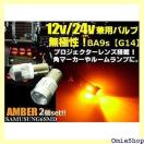 12V/24V兼用 無極性/ピン角1度 Ba9s・G14型/黄色・オレンジ系アンバー/6連SMDLED/2個セット サイド マーカー 角マーカー トラック LEDバルブ 拡散 プロジェクターレンズ付 1134