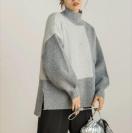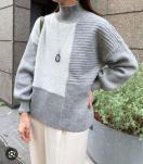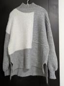 毛足のあるシャギー素材と編み方の変化でブロッキング柄に仕上げた1枚で着映えが叶う主役ニット。