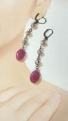 ピンク系マーブルカラーのチェコビーズをアンティーク色の金具で繋いだ4連ピアスです♪