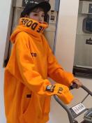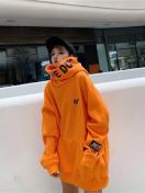レディース Y2K オーバーサイズ フリース裏地付きフード付きスウェットシャツ - ソフトで暖かい冬用プルオーバー、ハイカラー&レターグラフィック、ルーズフィットのカジュアルストリートウェア、オレンジカラーブロックでデイリーコミュート&レイヤリングに最適(ナルト風スタイル) - 万能な秋冬ファッション
