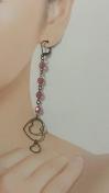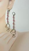 ピンク色のチェコファイアポリッシュビーズに、アンティーク色のハートモチーフを繋いだロングピアスです☆