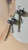 大粒のコットンパールにアンティーク色のチェーン、ジルコニアを組み合わせたフレンチフックピアスです☆