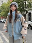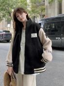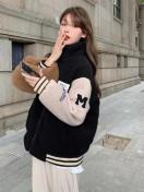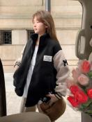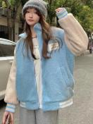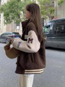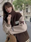厚手で暖かい冬用コート - 韓国ファッション オーバーサイズ ベースボールジャケット フルジップ開閉 & レトロレタープリント、ルーズフィット カジュアルアウター 秋/冬向け、普段使いやセミフォーマルな服装に最適な万能アウタージャケット、秋のファッション