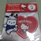 ハローキティの50周年記念、ポチャッココラボアクリルキーホルダーとエアーフレッシュナーのセットです。
