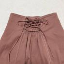 バックレースアップロングスカート フレアスカート バックレース 編み上げ Aライン ミディ丈 配色ステッチ ドレープ感 ボリューム ハイウエスト 美シルエット スタイルアップ ウエストシャーリング ウエストゴム ポケット有り シンプル 無地 カジュアル 大人上品 エレガント ガーリー フェミニン 大人可愛い