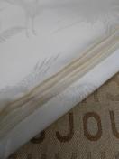 親の縫製工場時代からの保管品。和装ウェディング関係の縫製をやっていた時期があり、そのときの生地かと思います。知人の帯の機屋さんに見ていただいたところ「掛け下の生地じゃないかな、人絹のようだよ。古い生地だよ」と言ってましたが、もとより参考意見としての紹介であり、出品者の保証できるものではありません。