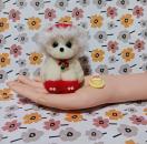 サンタ帽をかぶった羊毛フェルトの可愛い人形、鈴付きでクリスマスにぴったり。