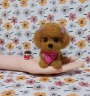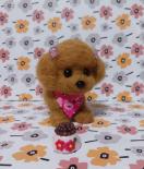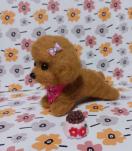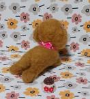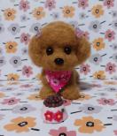 羊毛フェルト製のトイプードル ピンクのバンダナとリボン付き。