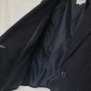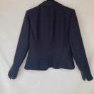 ツイード、ネイビーカラーのテーラードジャケット、テクスチャー仕上げで洗練された印象。