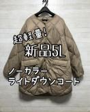 新品☆5L♪ベージュ系ライトダウンコート♪ノーカラー軽量シンプル☆Q565
