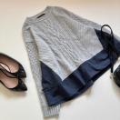 ◆未使用◆グレディブリリアン◆重ね着風ケーブルニット◆グレー×ネイビー◆F