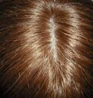 1枚目ほど明るくはございません、髪の毛を下すと毛先位が見えます、