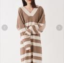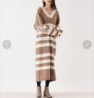 パネルボーダーがポイントのVネックニットワンピース。すっきりとしたネックラインがデコルテを覗かせ、絶妙なバランスの抜け感を演出。