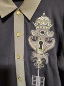 茶地に鍵のエンブレム刺繍&金ボタンで素敵なお品です。