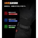 LEDランプで電池残量と温度設定が一目でわかり、ボタン操作で簡単に切り替え可能です。左右それぞれに3000mAhのバッテリーが付属し、DC充電式で同時充電が可能。PSE認証済みで安全性も確保。撥水・防風・防水仕様のポリエステル生地を採用し、雪かきやウィンタースポーツにも最適。