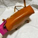上質なヌメ革を使い、帆布と合わせた大人かわいいリュックサック。コンパクトなサイズですが、お財布、ポーチ、スマートフォン、手帳、350mlのペットボトルなどが入ります。背面にファスナー口もついていますので、前面のベルトを外さなくとも、中の物が出し入れできます。