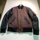 ツイードとナイロンのコンビネーション、Mサイズの中綿入りMA-1ジャケット。