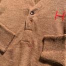 肘パッチのデザイン、肩のボタンかがりのデザインなどポールスミスらしい遊び心満載のVネックセーターですが、遊びが多い分素材はアルパカ100%としっかり高級素材を使いバランスの良いデザインニットですね^ ^