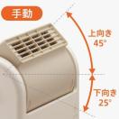 1.広範囲をあたためる。手動で送風口を上下に角度調節可能。