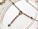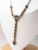 ブランド「ZEZ」のラインストーンネックレスです。 スワロフスキークリスタルが使用されており、胸元で上品に輝きます。 素材は**Silver Filled(銀張り)**製品で、真鍮などの母材の上に銀を被せたもので、「925F」の刻印があります。Y字のようなドロップ(ラリエット)デザインで、コーディネートのアクセントになります。