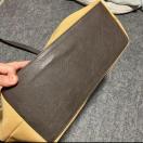 ベージュと、焦茶のバイカラーの色使いがお洒落なバッグです♪