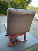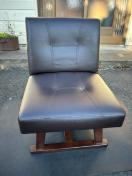 合成皮革製のブラウンダイニングチェア、コンパクトなデザインで座面高400mm。
